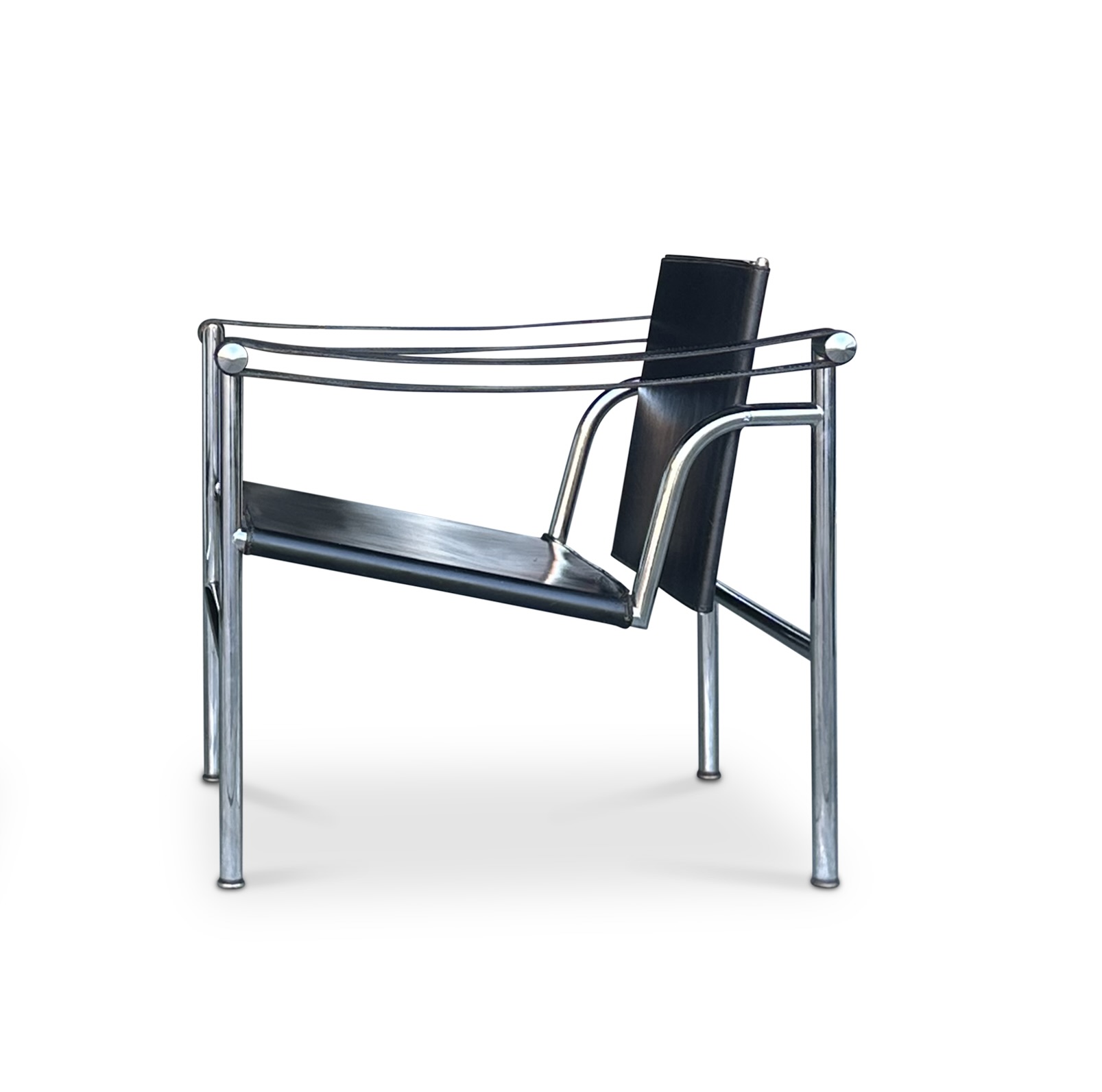 Iconic basculant chair design from the bauhaus period by Le Corbusier et al, issued by Cassina.